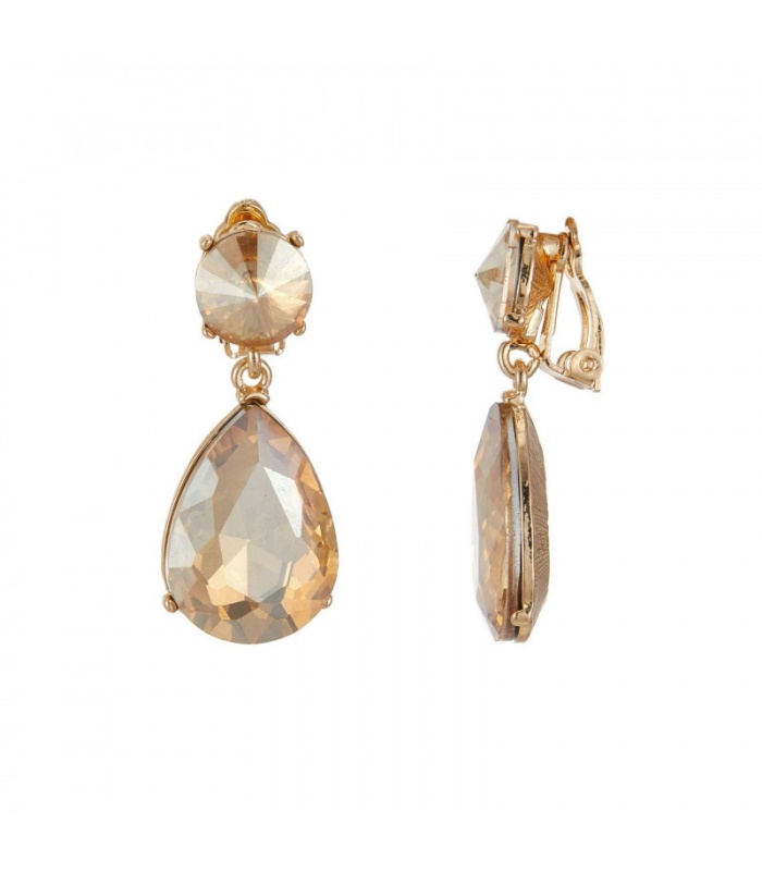 Prachtige Goudkleurige Oorclips met Schitterende Glasstenen