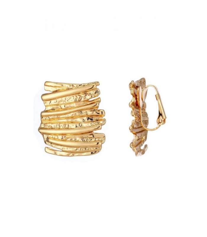 Oorclips goudkleurige rechthoekig met een streep patroon zijn een opvallend mode-item voor iedere fashionista. Ze geven een statement look en zijn ideaal voor dagelijks gebruik of een speciale gelegenheid. Het rechte ontwerp met subtiel streepjespatroon zorgt voor een elegante, moderne uitstraling en is makkelijk te combineren met andere sieraden. Deze oorclips zijn lichtgewicht en comfortabel om te dragen.