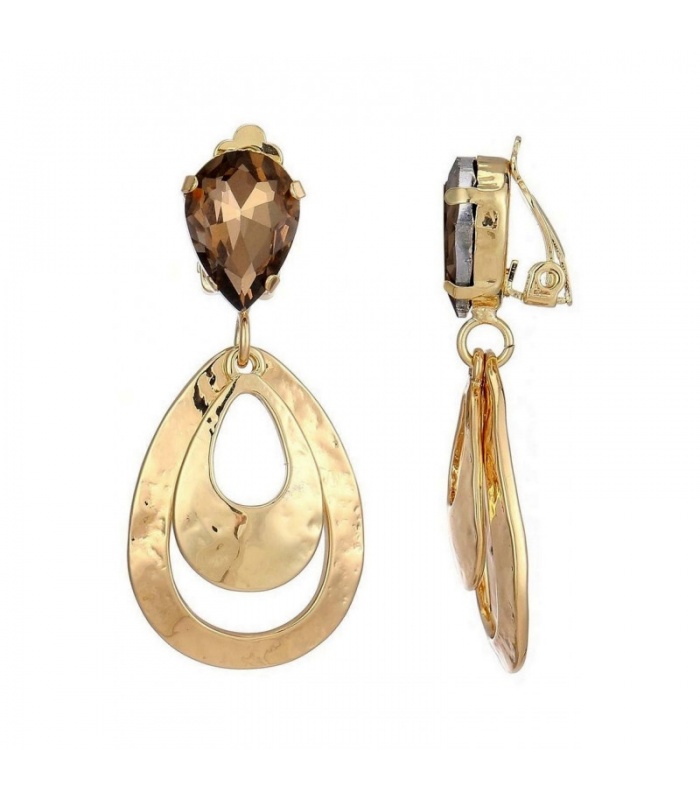 Hoe trek je moeiteloos de aandacht? Deze oorclip combineert een druppelvormig facetgeslepen bruin kristal met golvende, goudkleurige lagen. Het contrast tussen glans en structuur geeft deze oorclips een opvallend en stijlvol karakter.