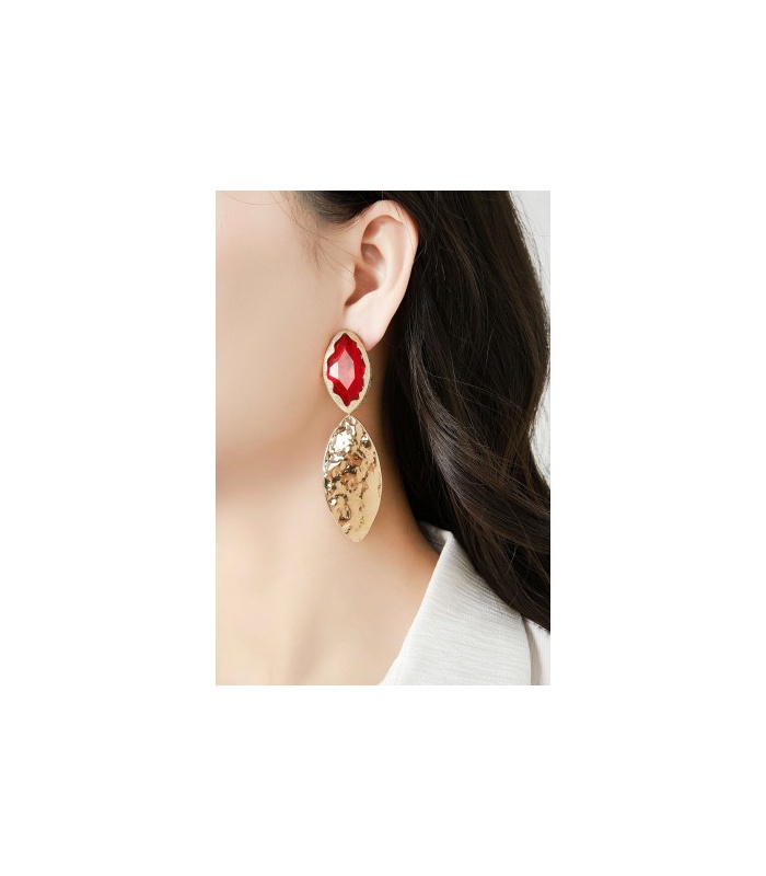 Hoe voeg je in een beweging luxe en kleur toe aan je look? Deze oorclips combineren een diep smaragdgroene facetsteen met een gehamerde, bladvormige hanger in goudkleur. De levendige glans en het unieke lijnenspel zorgen voor een opvallend, maar stijlvol fashion statement.