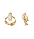 Rechthoekige oorclips met iriserende inleg in goudkleurige zetting.