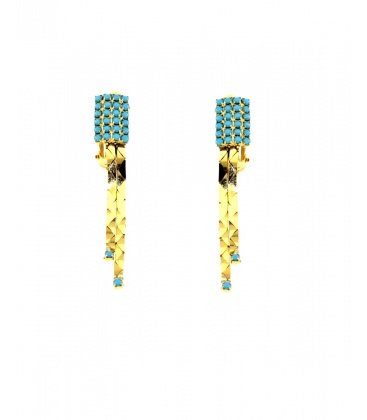Oorclips met lichtblauwe steentjes voegen een vleugje verfijning toe aan elke outfit. De goudkleurige afwerking in combinatie met de subtiele blauwe tinten creëert een tijdloze en elegante uitstraling. Perfect voor zowel dagelijkse draag als speciale gelegenheden.