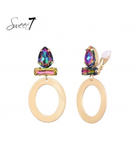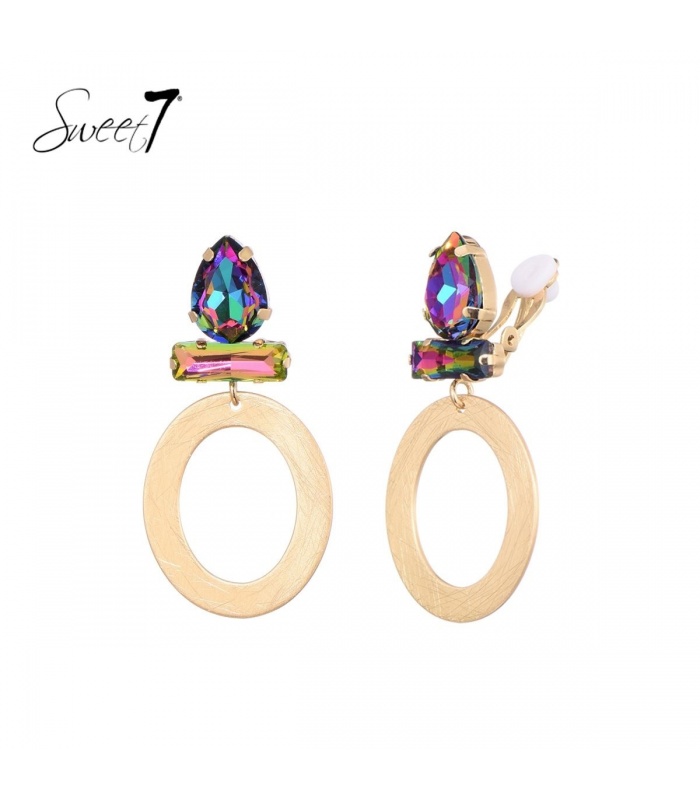Goudkleurige oorclips met gekleurde glas steentjes.