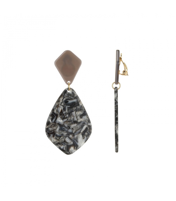 Grijs bedrukte oorclips met een effen oorstukje in ruitvorm.