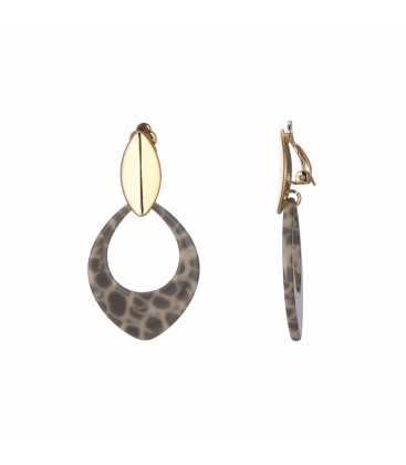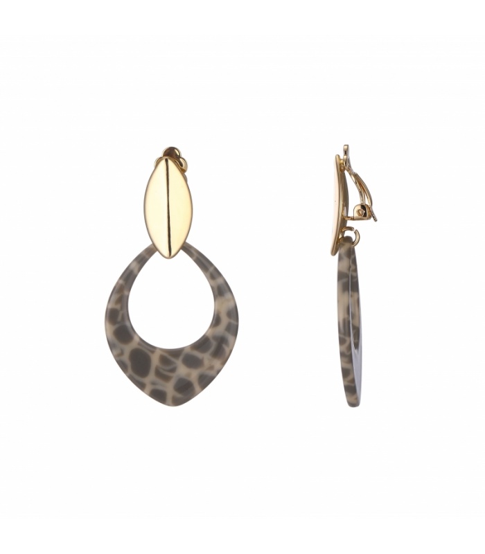 Grijs met beige oorclips en een goudkleurig oorstukje