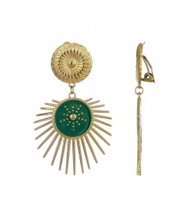 De combinatie van een zonnemotief en de groene kleur geeft deze oorbellen een speelse én elegante uitstraling. Ideaal voor wie houdt van fashion statement sieraden met een twist. Door de comfortabele klem zijn ze perfect voor oren zonder gaatjes.