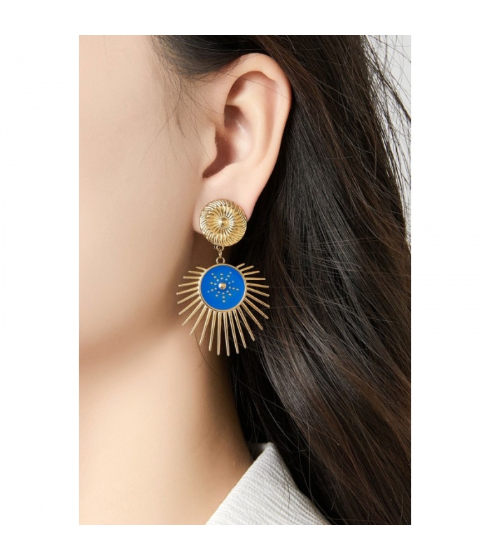 Oorclips met een zonnemotief trekken de aandacht. Deze goudkleurige oorclips combineren een stralend design met een groene tint. De stijlvolle vorm zorgt voor een opvallende look, perfect voor zowel dagelijkse outfits als feestelijke gelegenheden. De oorbel straalt luxe uit door het zonvormige ontwerp dat prachtig afsteekt tegen het goud. Oorbellen als deze geven je look een retro twist met een moderne flair.
