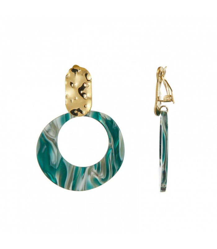 Groen gekleurde oorclips met een goudkleurig bewerkt oor stukje