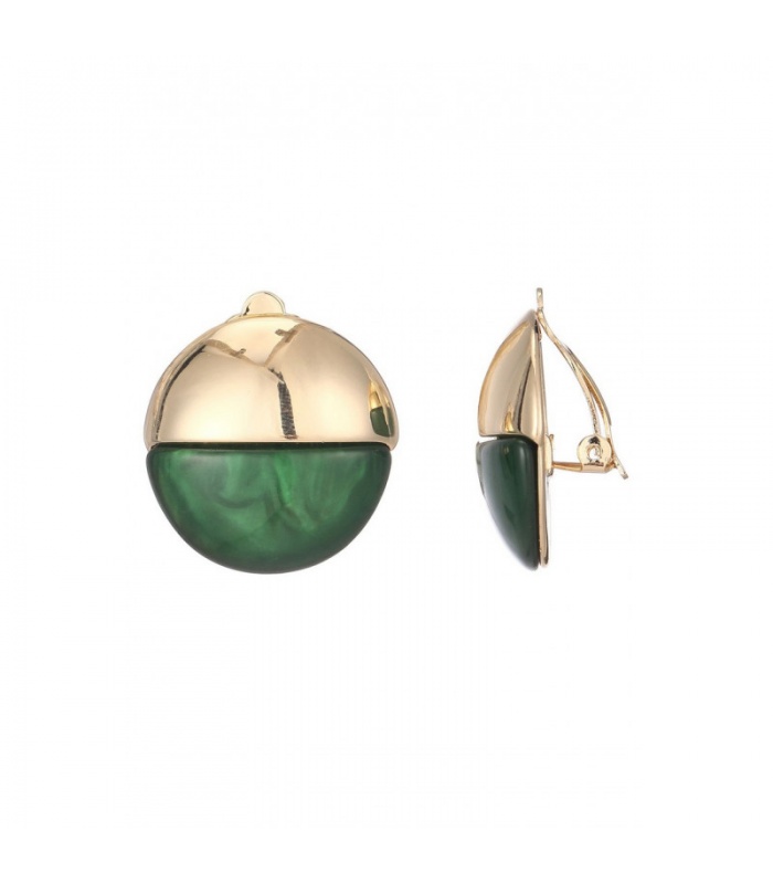 Wat krijg je als glans en kleur perfect in balans zijn? Deze oorclips combineren een goudkleurige bovenhelft met een diepgroene onderzijde in marmerlook. De ronde vorm geeft een moderne en gestroomlijnde uitstraling. Ze brengen luxe in een subtiele vorm, perfect voor zowel casual chic als avondwear.