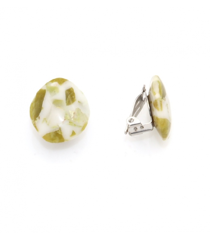 Wil je een natuurlijke touch toevoegen aan je look? Deze lichtgewicht oorclips met marmerachtig patroon in groen en wit geven een frisse, subtiele uitstraling. Ideaal voor een casual outfit of als zachte kleurtoevoeging aan een minimalistische stijl.