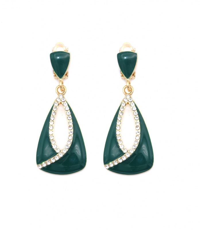 Oorclips zijn de perfecte keuze voor wie geen gaatjes heeft, maar toch stijlvolle oorbellen wil dragen. Deze groene oorclips met heldere strass rand combineren elegantie met comfort.