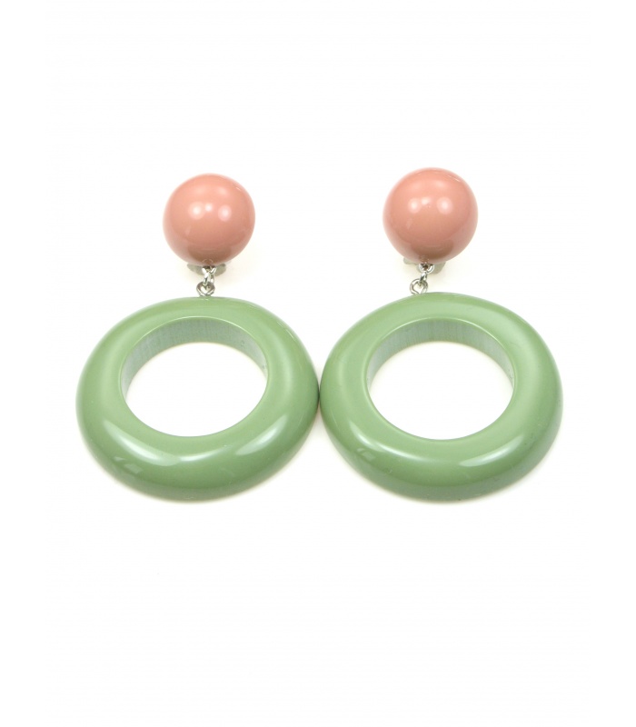 Oud roze met groene oorclips met ronde hanger