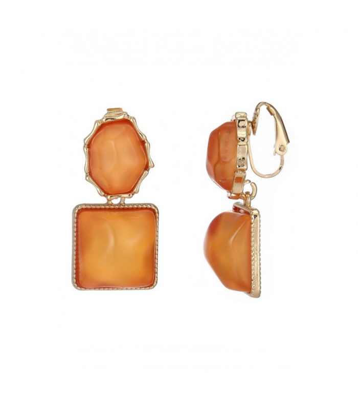 Oorclips met oranje hars in een goudkleurige setting bieden een levendige en stijlvolle uitstraling. De combinatie van de warme oranje tint met de luxe gouden accenten maakt deze oorbellen tot een opvallend accessoire.