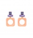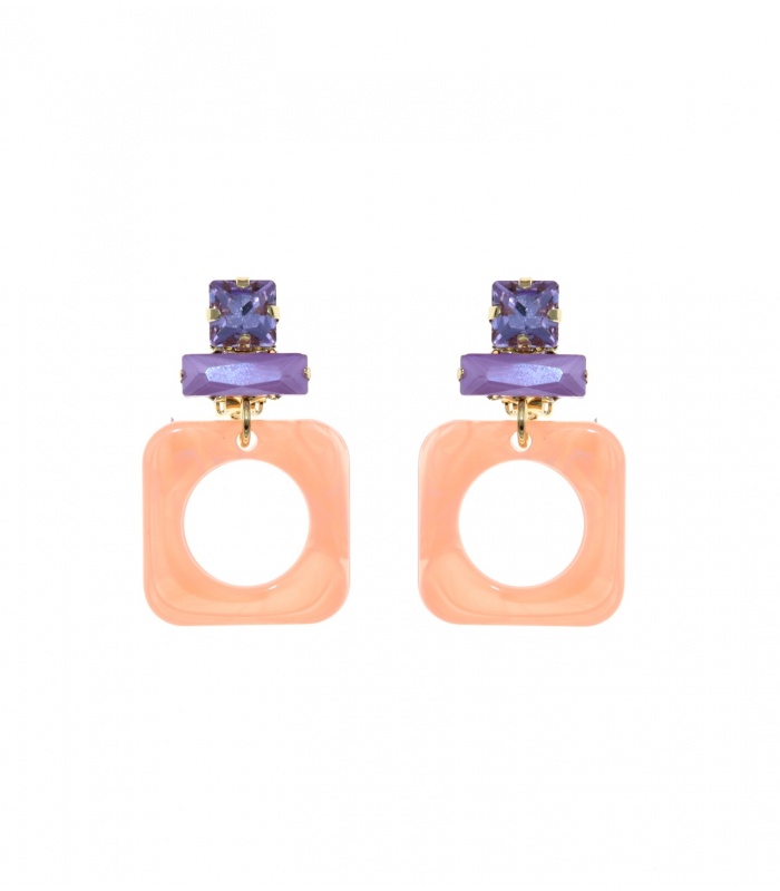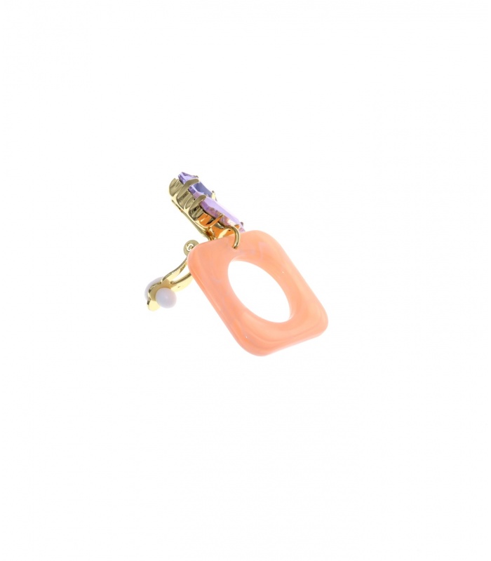 Oranje oorclips met paarse glas steentjes