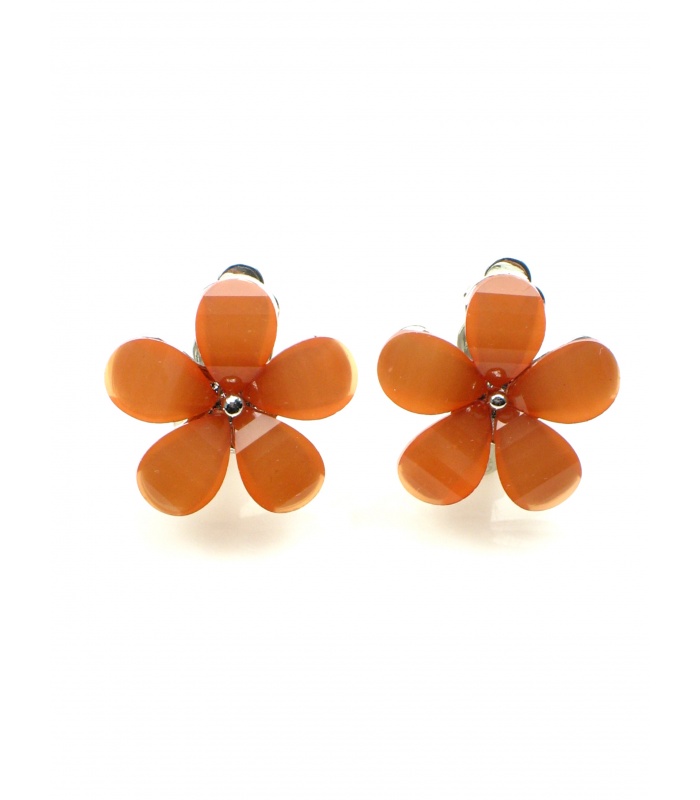 Mooie oranje oorclips in de vorm van een bloemetje.