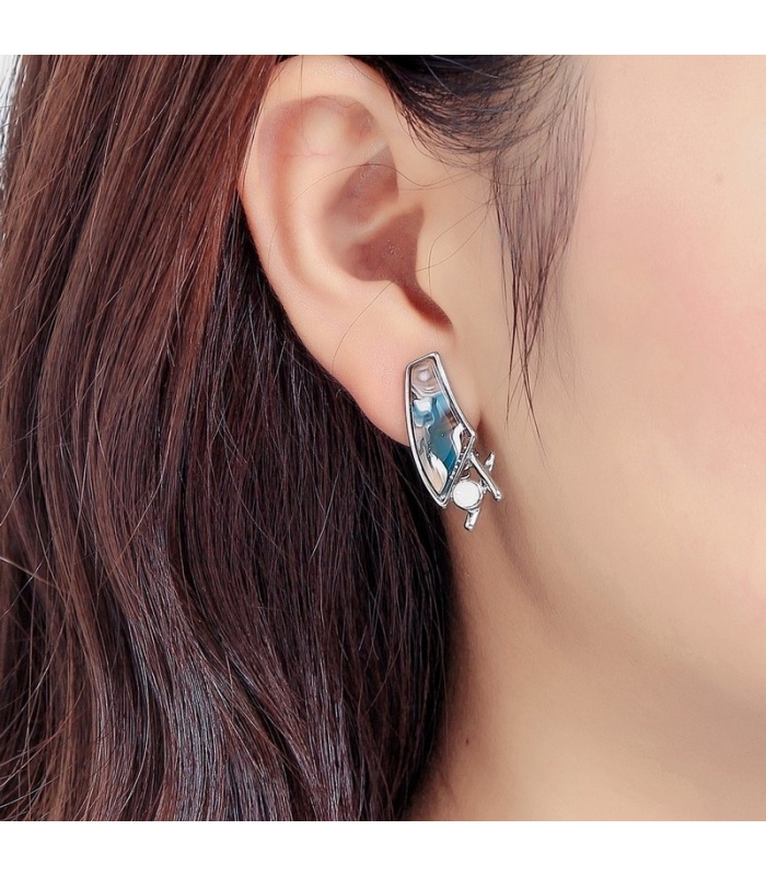 Gekleurde oorclips met kunsthars inleg en strass steentje