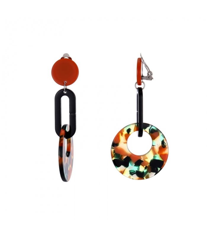 Mooie oorclips met een gekleurde hanger en een oranje oorstukje