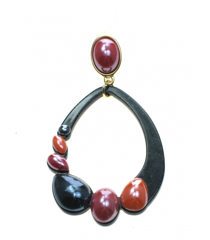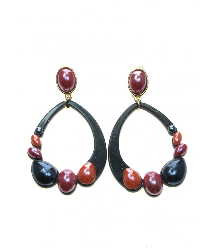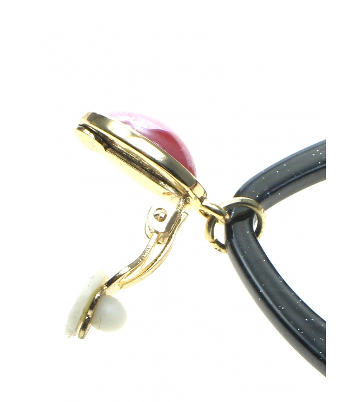 Zwarte oorclips met gekleurde stenen.