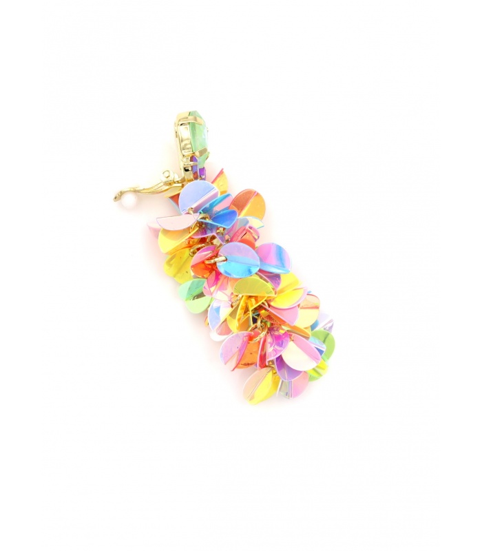 Wil je kleur, volume in een? Deze oorclips combineren iriserende schijfjes met paars, oranje een opvallend ontwerp. De glanzende accenten vangen elk straaltje licht. Een echte eyecatcher voor feestjes, festivals of een statement look.