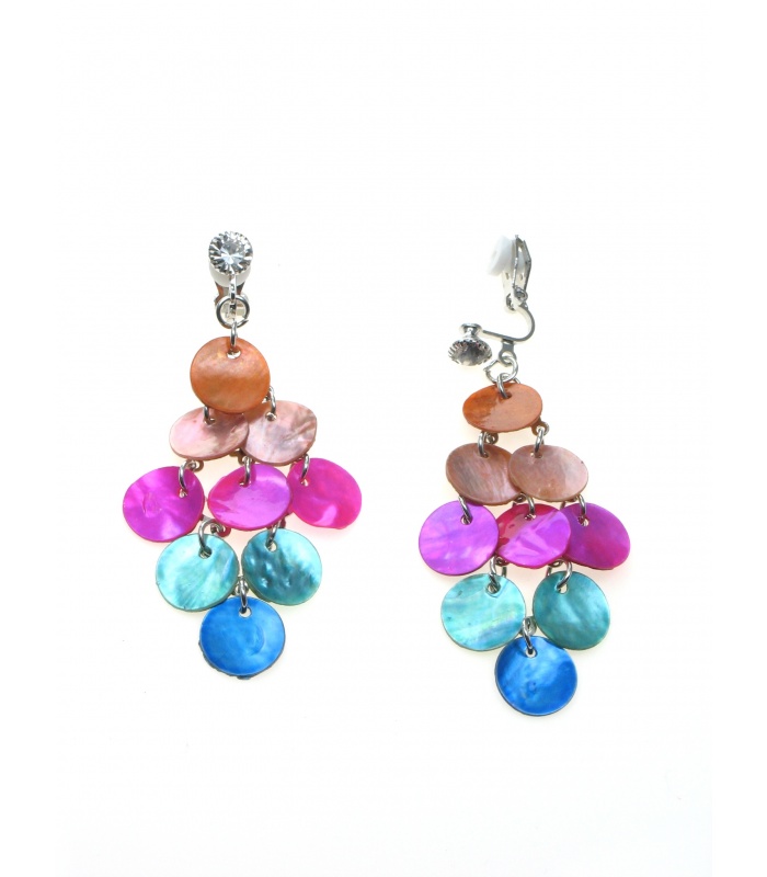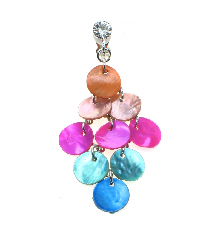 Deze vrolijk gekleurde oorclip is gemaakt van dunne parelmoer plaatjes en heldere strass steen. De clip is eenvoudig te bevestigen en perfect om je outfit net dat beetje extra te geven.