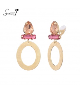 Goudkleurige oorclips met gekleurde strass steentjes.