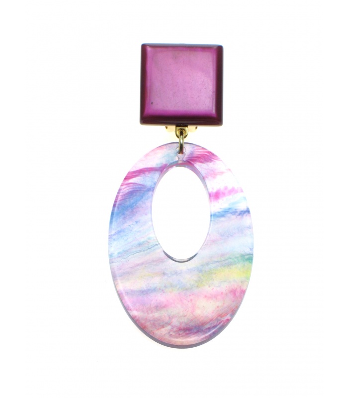 Het paarse kleurenpalet voegt een vleugje mysterie toe, terwijl het effen vierkante oorstukje zorgt voor een strakke en moderne afwerking.