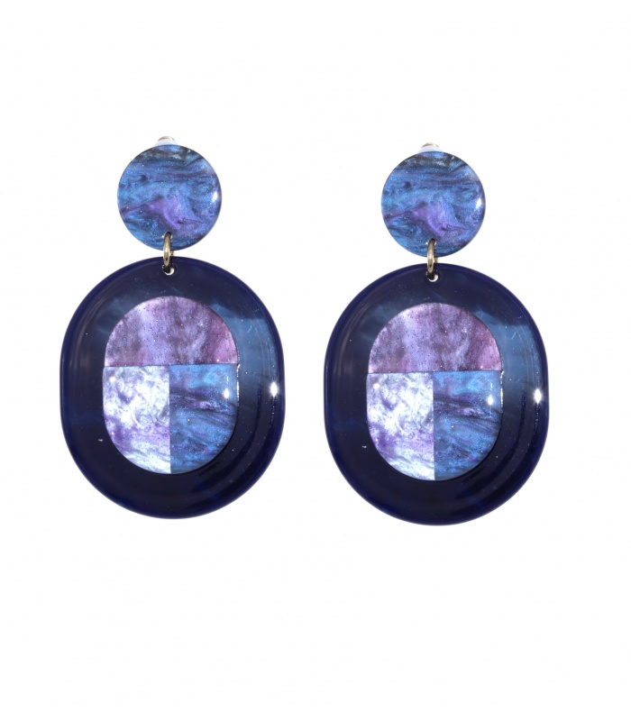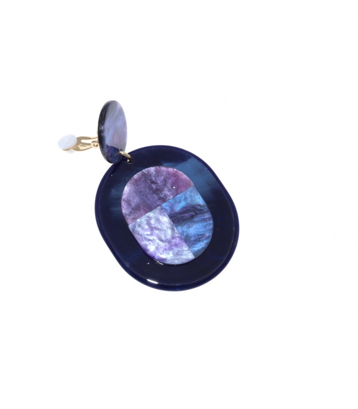 Deze clip oorbel past perfect bij zowel casual als chique outfits. De paars-donkerblauwe tinten brengen diepte en elegantie, en combineren moeiteloos met stoffen als zijde, denim of velvet. De klem blijft stevig zitten, zonder te knellen, dankzij de rubbertjes.