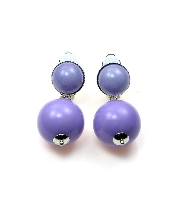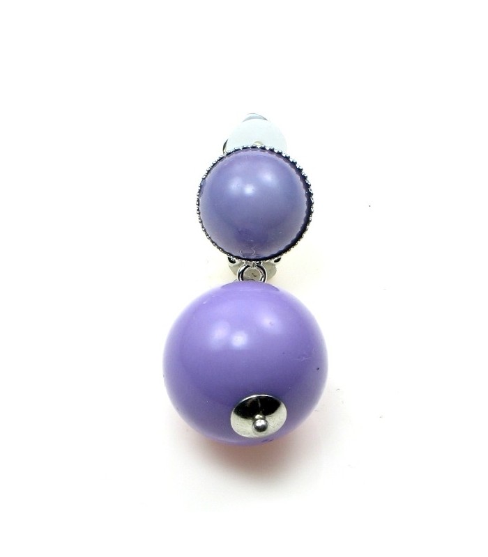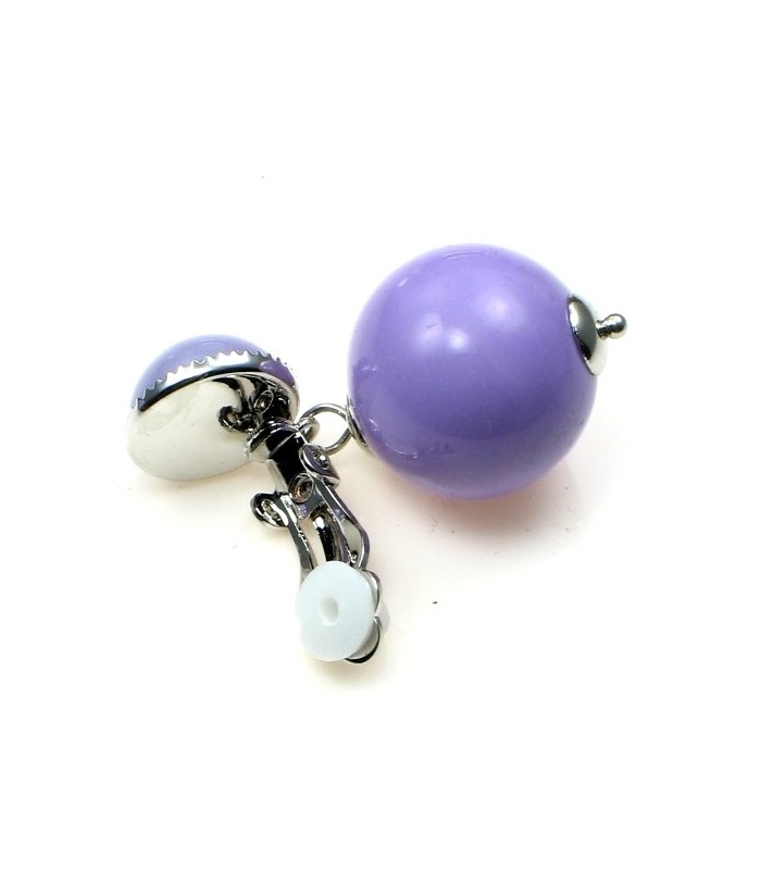 Oorclips met paarse bolvormige hanger. Lengte van de clip oorbel is 4 cm.
