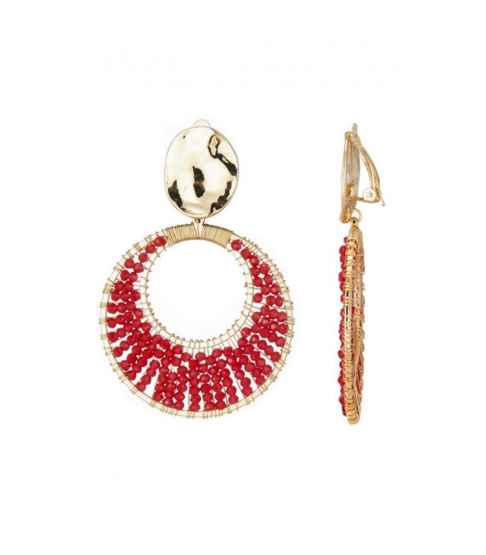 Deze goudkleurige oorclips zijn voorzien van prachtige rode kristallen kralen, die een opvallende en stijlvolle touch toevoegen aan elke outfit. Dankzij het comfortabele clipmechanisme zijn ze ook ideaal voor wie geen oorgaatjes heeft, terwijl de kristallen een luxe uitstraling bieden.