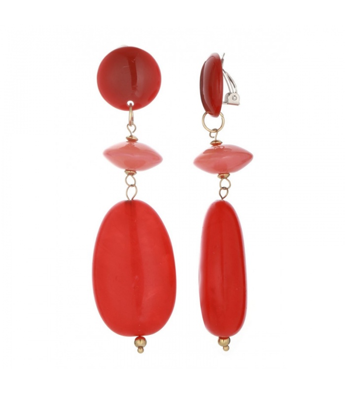 Hoe voeg je instant energie toe aan je look? Deze oorclips in levendig rood en zacht koraal zorgen voor een krachtige, vrouwelijke uitstraling. De marmerlook kralen en langwerpige vormen creeeren een opvallend silhouet dat zowel bij casual als feestelijke outfits past.