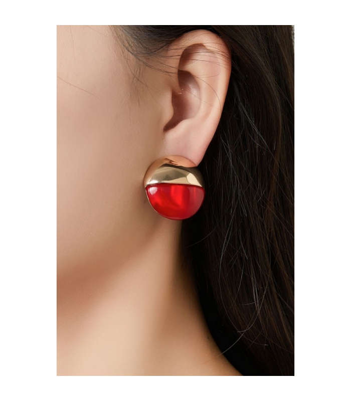 Hoe geef je je outfit in een keer meer expressie? Deze oorclips combineren een glanzende goudkleurige bovenkant met een volle, helderrode onderzijde. De ronde vorm en het gladde oppervlak zorgen voor een krachtige, maar stijlvolle uitstraling. Een perfecte keuze voor wie durft op te vallen met klasse.
