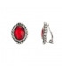 Ovale oorclips met rode facet steen in een zilverkleurige zetting van Belle Miss.