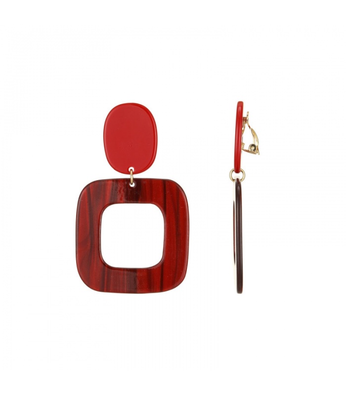 Rode bedrukte vierkante oorclips met een effen oorstukje.
