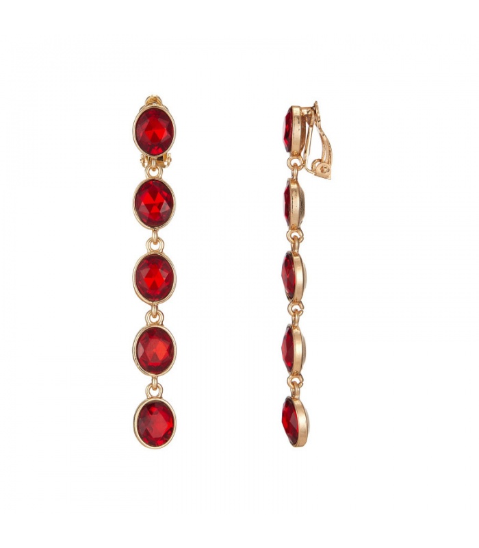 Trendy Accessoire: Rode Glas Stenen Oorclips in Goudkleurige Setting