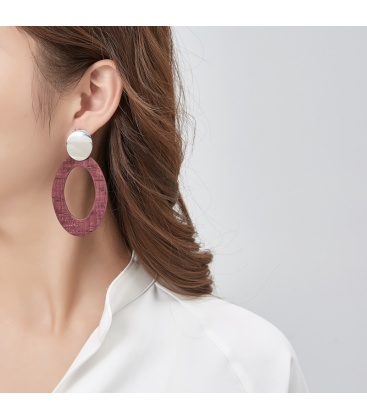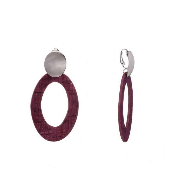 Rode oorclips met een ovale hanger en een zilverkleurig oorstukje