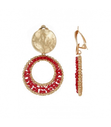 Deze elegante oorclips zijn voorzien van prachtige rode glaskralen die schitteren bij elke beweging. De gouden omlijsting zorgt voor een luxe uitstraling en maakt deze oorclips perfect voor zowel casual als feestelijke outfits. De combinatie van de warme rode tint en de glanzende gouden accenten geeft een chique en opvallend effect.