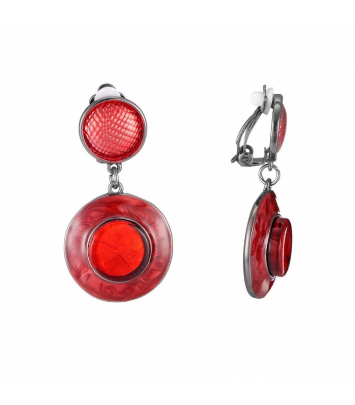 Rode oorclips van rode ronde hanger en gunblack kleur zetting.