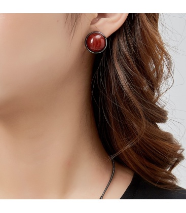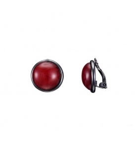 Ronde oorclips met rode halfronde kunstparel in gun black zetting.