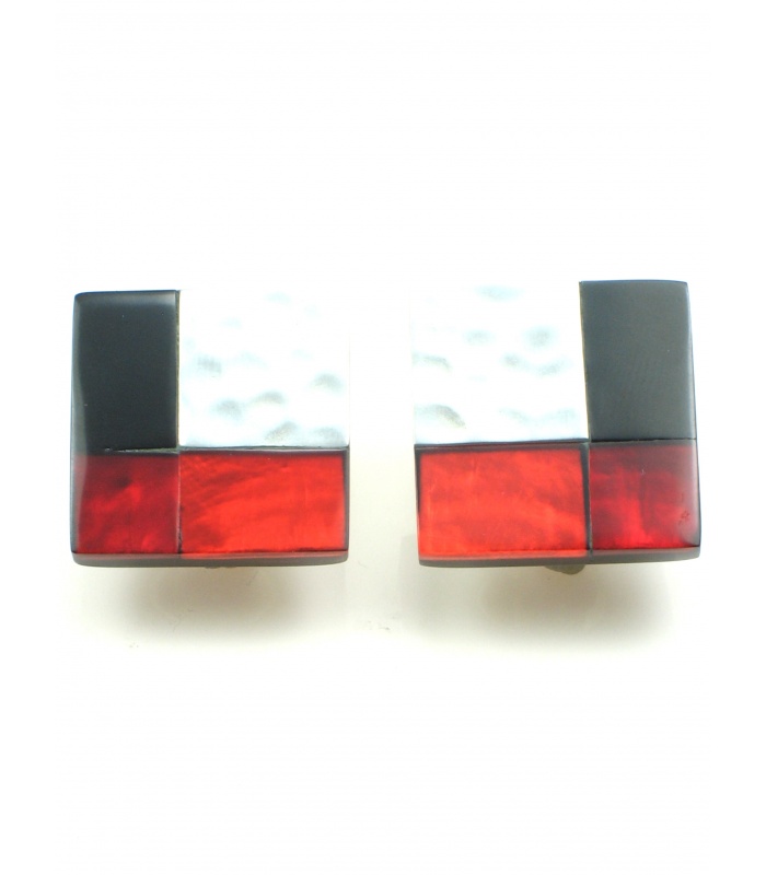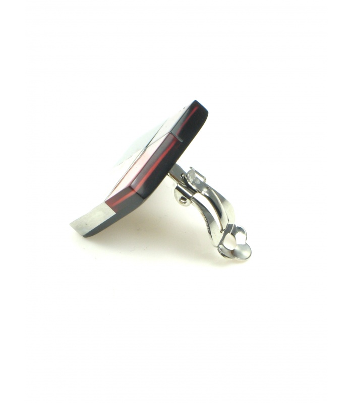 Vierkante mooie oorclips met zilverkleurige accenten.