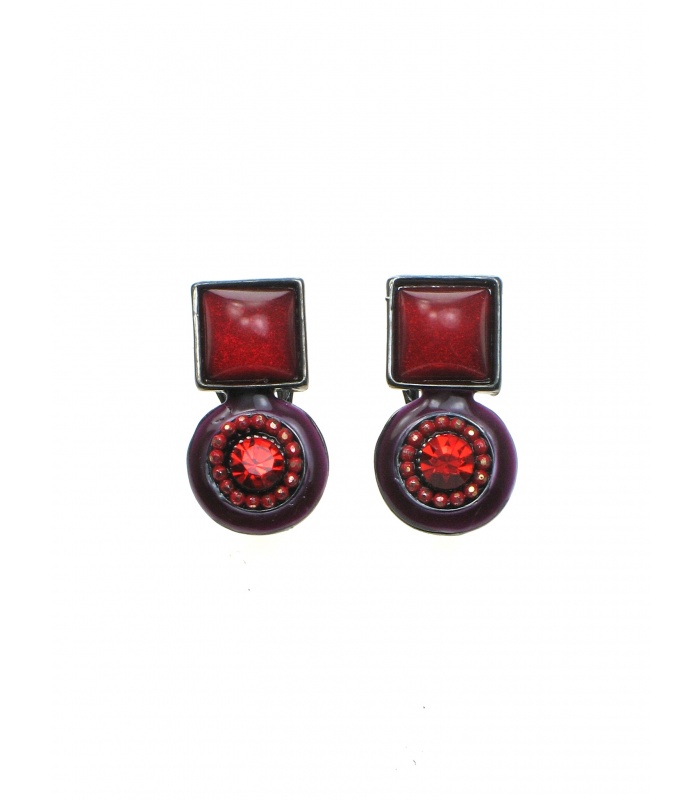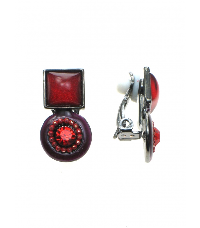 Onze rode oorclips combineren twee verschillende vormen - een cirkel en een vierkant - voor een speelse en unieke uitstraling. Het glassteentje in het midden voegt een subtiele glinstering toe, waardoor deze sieraden je oren laten stralen. Het rode kleurenschema is levendig en opvallend, perfect voor vrouwen die hun look willen accentueren.
