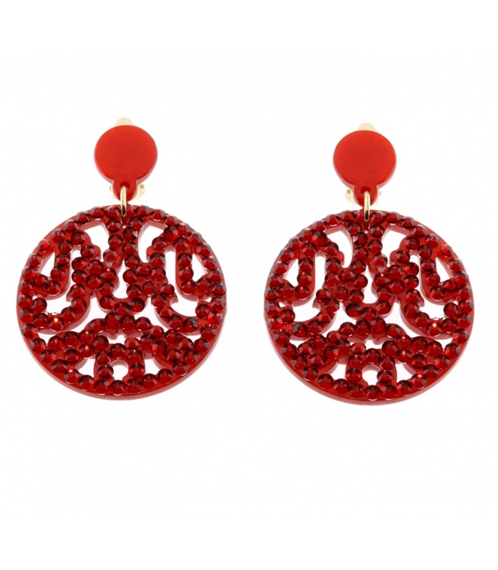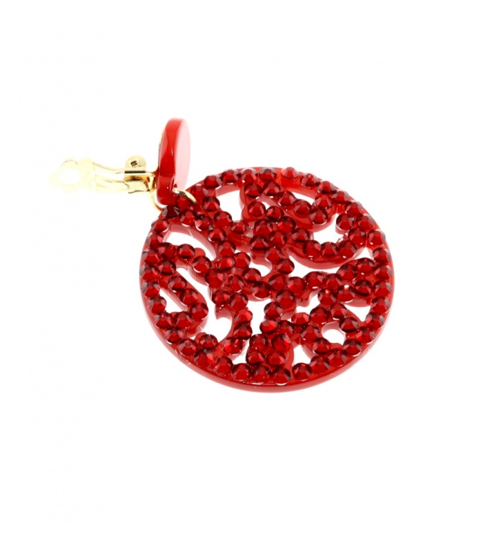Deze oorclips vallen meteen op door hun diepe rode kleur en elegante patroon. De hanger is versierd met schitterende steentjes die een prachtige glinstering geven bij elke beweging. Perfect voor een feestelijke gelegenheid of om een dagelijkse look een verfijnde touch te geven. De clips zijn comfortabel en gemakkelijk te dragen, ook zonder gaatjes.