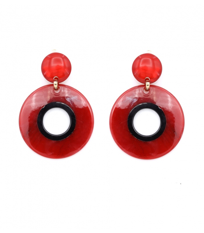 Hoe combineer je opvallend rood met moderne flair? Deze oorclips brengen een krachtige look zonder overdaad. De transparant rode cirkels met zwart accent creëren een grafisch statement dat direct de aandacht trekt. Ideaal voor wie houdt van uitgesproken sieraden met een strakke vormgeving.
