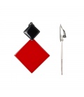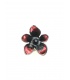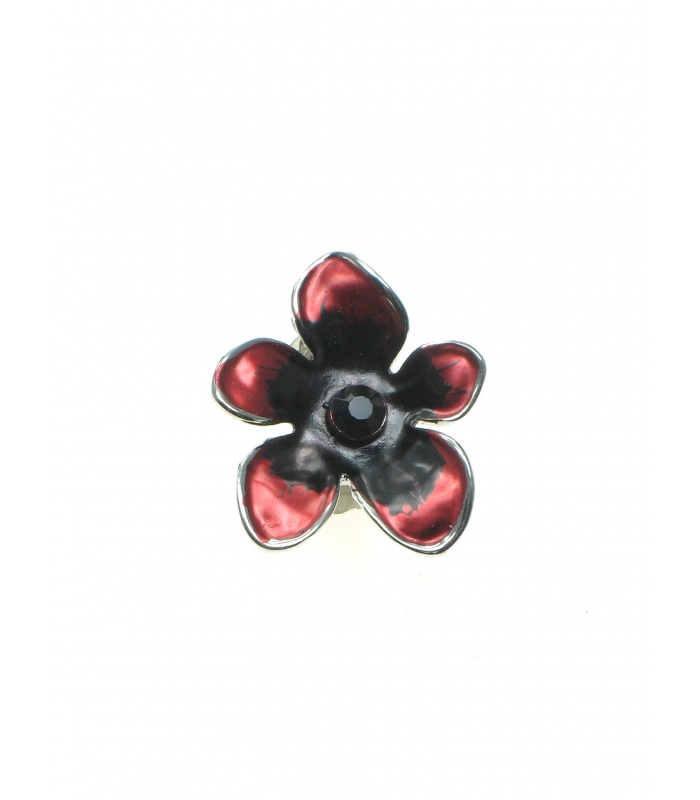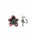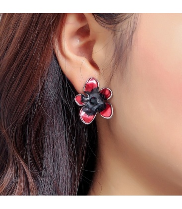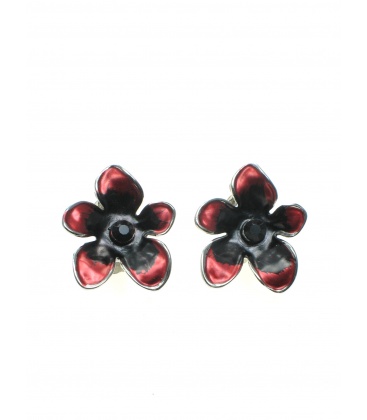 Rode bloemvormige oorclips met zwarte strass steentjes.
