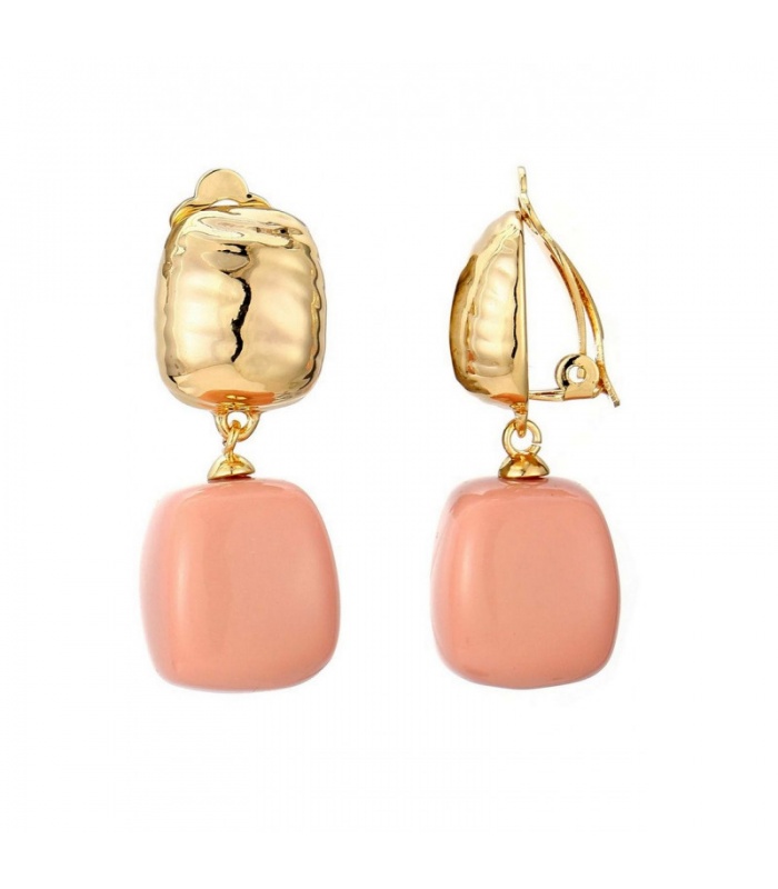 Oorclips met hanger in een goudkleurige finish en vierkant roze accent vallen op. De oorbel heeft een square design en een fashion look. Oorbellen geven een glamoureuze uitstraling, perfect voor sieraden styling en fashion outfits. Ze zijn geschikt voor oren zonder gaatjes en voorzien van kleine rubbertjes en nikkelvrij materiaal voor comfort en veiligheid. Geniet van deze trendy mode oorbel en bestel nu voor je fashion statement.