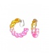 Deze opvallende oorclips van Belle Miss uit Parijs combineren geel en roze acrylaat tot een uniek design. Het lichte materiaal zorgt voor comfortabel dragen, terwijl de levendige kleuren een speelse touch aan je outfit toevoegen. Perfect voor fashionista's die een statement willen maken zonder concessies te doen aan comfort.
