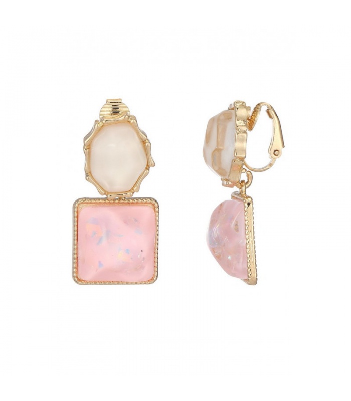 Deze oorclips combineren roze en witte hars met een elegante goudkleurige rand, wat zorgt voor een verfijnde en vrouwelijke uitstraling. Het gebruik van hoogwaardige hars en de glanzende gouden accenten maken deze oorclips tot een opvallend accessoire dat zowel bij casual als formele outfits past.