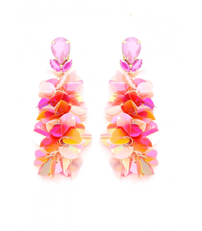 Wil je kleur, volume in een? Deze oorclips combineren iriserende schijfjes met fuchsia roze een opvallend ontwerp. De glanzende accenten vangen elk straaltje licht. Een echte eyecatcher voor feestjes, festivals of een statement look.