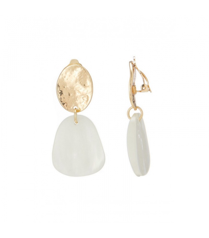 Oorclips met witte iriserende hanger en goudkleurige oorstuk