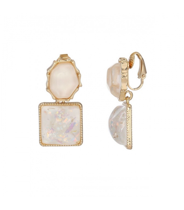 Deze oorclips combineren stralend witte elementen met een elegante goudkleurige rand, wat zorgt voor een tijdloze en verfijnde uitstraling. Het contrast tussen het heldere wit en de warme gouden tint maakt deze oorclips tot een veelzijdig accessoire dat zowel bij casual als formele outfits past.