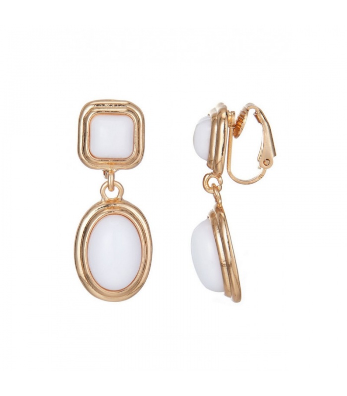 Witte hars oorclips met een goudkleurige rand van messing: Elegant en verfijnd.